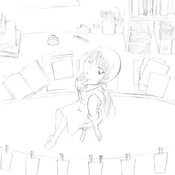 今回のラクガキは、コミケの時に配布していたイラスト内の一枚(低解像度・無彩色・コメ無し版)です。